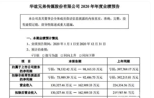 年开始,年全球疫情,华谊兄弟每年都出现大额亏损的窘境。 导致王中军不得不将,天价拍卖的名画打骨折抛售。 而这对于股票大跳水的华谊来说,也只是杯水车薪,之后的四年总亏损额更是超过亿。